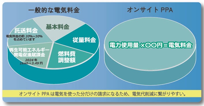 PPA事業者が企業の屋根や敷地に太陽光発電設備を設置し、そこで発電された電力を企業が購入する形態です。これにより、企業は電力コストの安定化と環境負荷の軽減を同時に実現できます。
