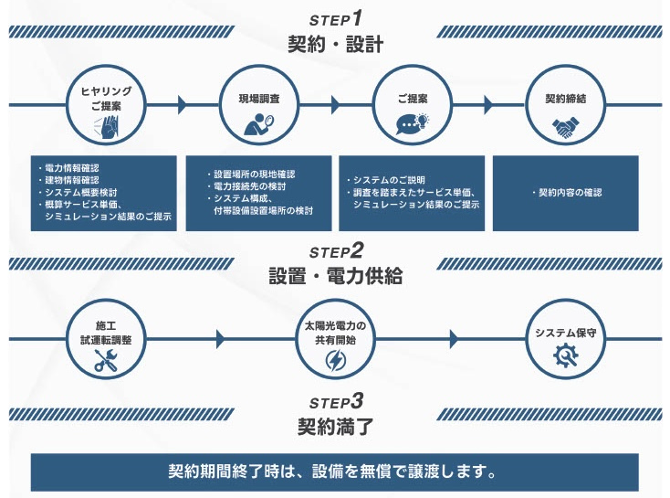 契約期間終了後の設備譲渡によって、長期的なコスト削減も期待でき、持続可能なエネルギーソリューションを実現します。